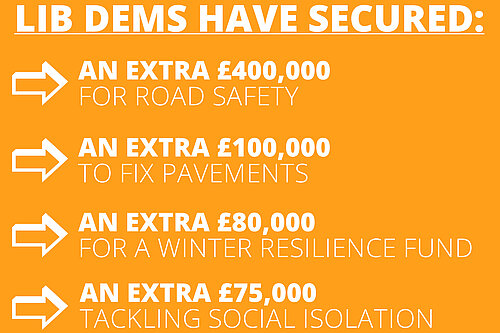The Gloucestershire Lib Dems are celebrating after all six of their budget amendments were accepted into the County Council budget